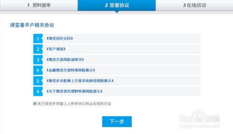 信息填写:准确、完整地填写您的个人信息。风险测评:根据要求完成风险承受能力评估,这是了解您投资偏好的重要环节。视频见证/人工核实:部分流程可能需要进行视频见证或与工作人员进行电话核实,以确认是您本人操作。签署协议:仔细阅读并签署相关的期货经纪合同、客户协议等法律文件。
